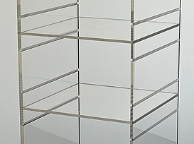 The outer walls use 1/4” (6mm) thick clear acrylic with 3/16” (4.5mm) adjustable shelves. For taller merchandise, simply remove a shelf and convert a multi-tier unit to a single shelf display. Adjustable shelves are assembled inside the unit when shipped.